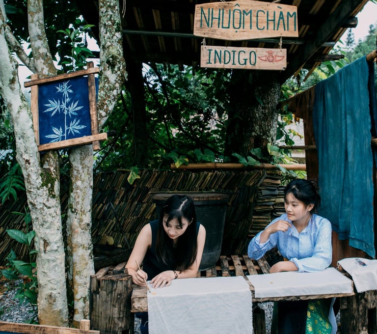 Trải nghiệm vẽ sáp ong trên vải lanh truyền thống của người Mông. Một trải nghiệm và cũng là một kỉ niệm khó quên tại ngôi làng của chúng mình